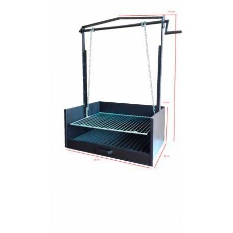 Barbecue Zusammensetzung Mod. Encimera mit verstellbarem Umlenkrollensystem von 60 cm, mit Schrank und Flügel, alles aus Eisen und Anstrich beständig gegen hohe Temperaturen von 600º, beinhaltet Kohlenbecken, Grill mit 6 mm Ø Stange, Ketten und abnehmbaren Griffen.