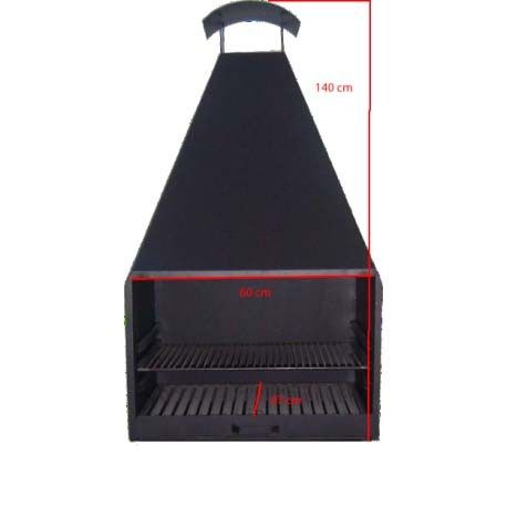 Barbecue Komposition Mod. INNOVA 60 cm mit trapezförmigem Aufhängebügel zum Anschrauben an die Wand und den Flügel, alles aus Eisen und anticoloric Farbe von 600º, enthält Kohlebecken, Grill mit 6 mm Ø Stab und abnehmbaren Griffen.