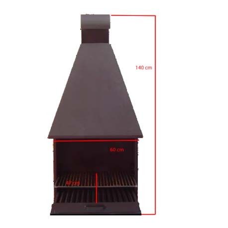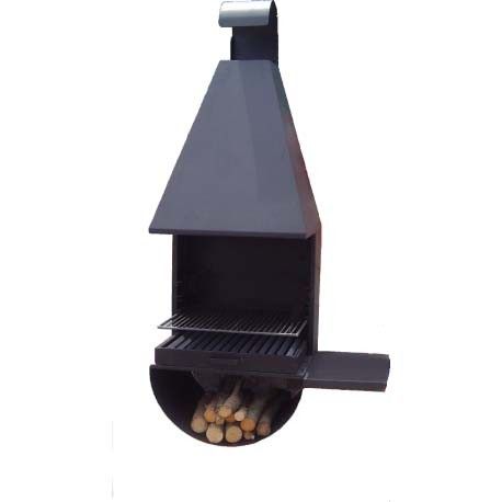 Mod.2007 composizione per barbecue di 60 cm con supporto appeso curvo per avvitare a parete e ala, tutti realizzati in ferro e vernice anticalorica di 600º, include braciere, griglia con asta di Ø 6 mm e manici removibili.