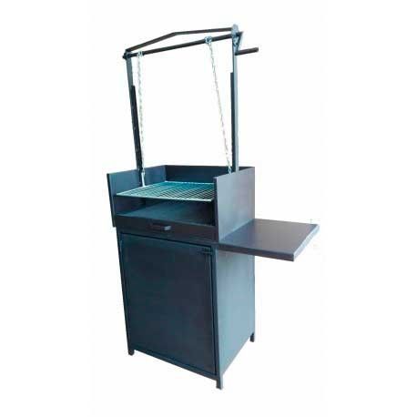 Composizione per barbecue mod. Encimera con sistema di pulegge regolabile da 60 cm, armadio e anta, tutti realizzati in ferro e vernice resistente alle alte temperature di 600 °, comprende braciere, griglia con asta Ø 6 mm, catene e maniglie rimovibili.