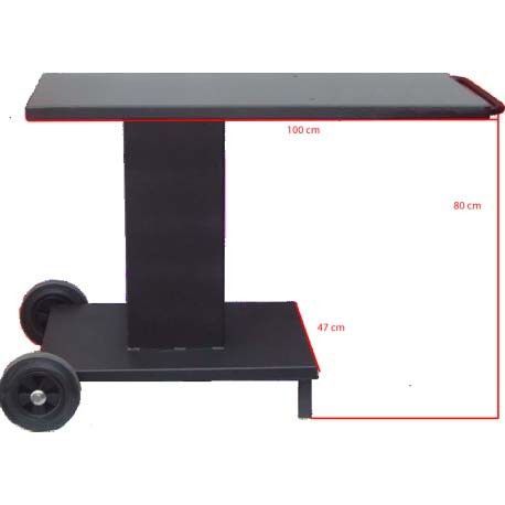Composizione per barbecue mod. INNOVA di 60 cm con carrello, tutti realizzati in ferro e vernice anticalorica di 600º, include braciere, griglia con asta di Ø 6 mm e manici removibili.